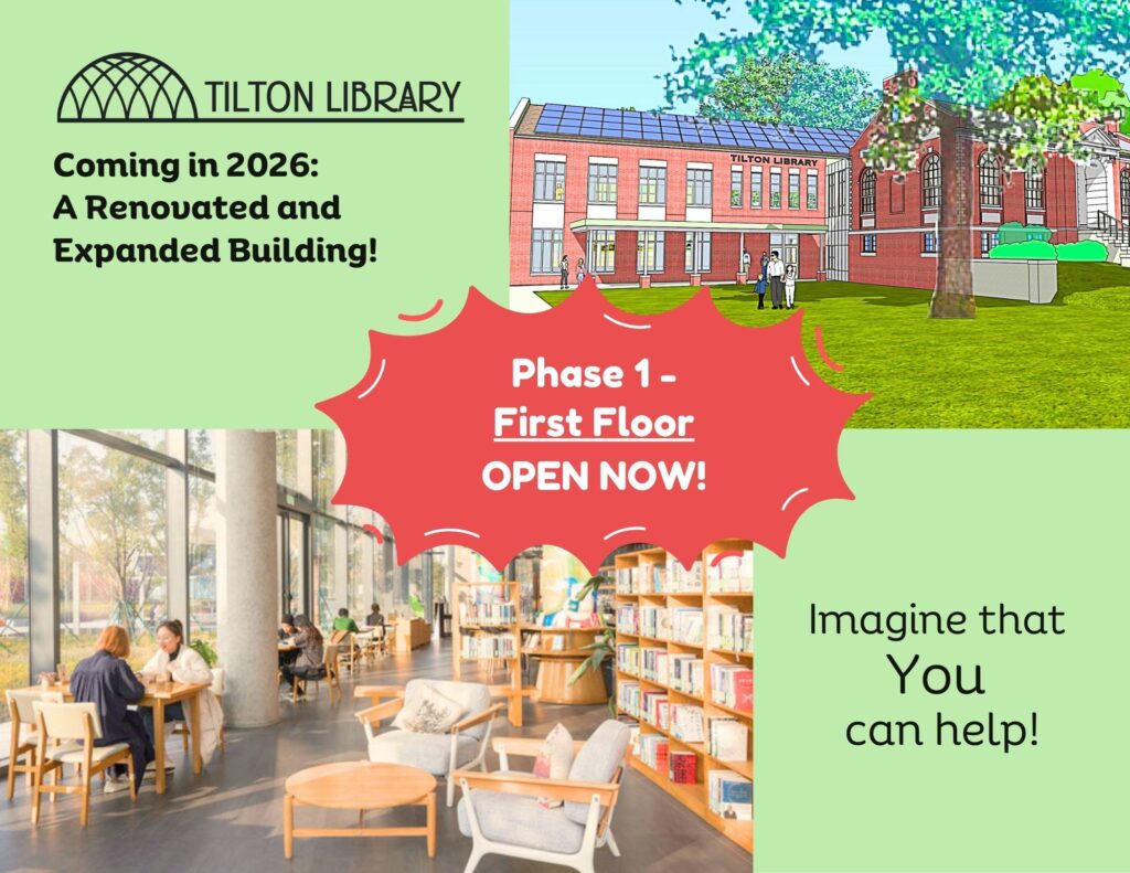 On July 7, 2022: After close to 10 years of hard work by many people, we got the opportunity to improve and expand our beloved library to be even better, with a one-time state library construction grant of $4 million dollars! Our heartfelt thanks to the Massachusetts Board of Library Commissioners (MBLC) for joining us in this new vision for an expanded Tilton Library. Thank you to all who have helped us get to this point.