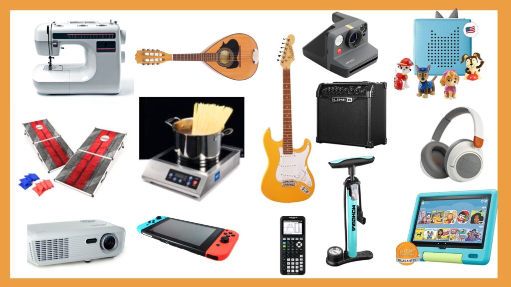 The Library of Things collection is funded through the library’s materials budget – just like books. Currently our Library of Things collection includes: ukulele, mandolin, sewing machine, , wifi hotspots, video game console, portable induction cooktop, snowshoes, bike pump, camera, guitar, games, puzzles, and more. With this collection, Tilton Library aims to offer the physical tools needed to support lifelong learning and creativity, and provide new ways for kids and adults to interact and explore. The collection supports the library’s mission to “enrich our community through opportunities for learning, sharing, growth, and fun.”