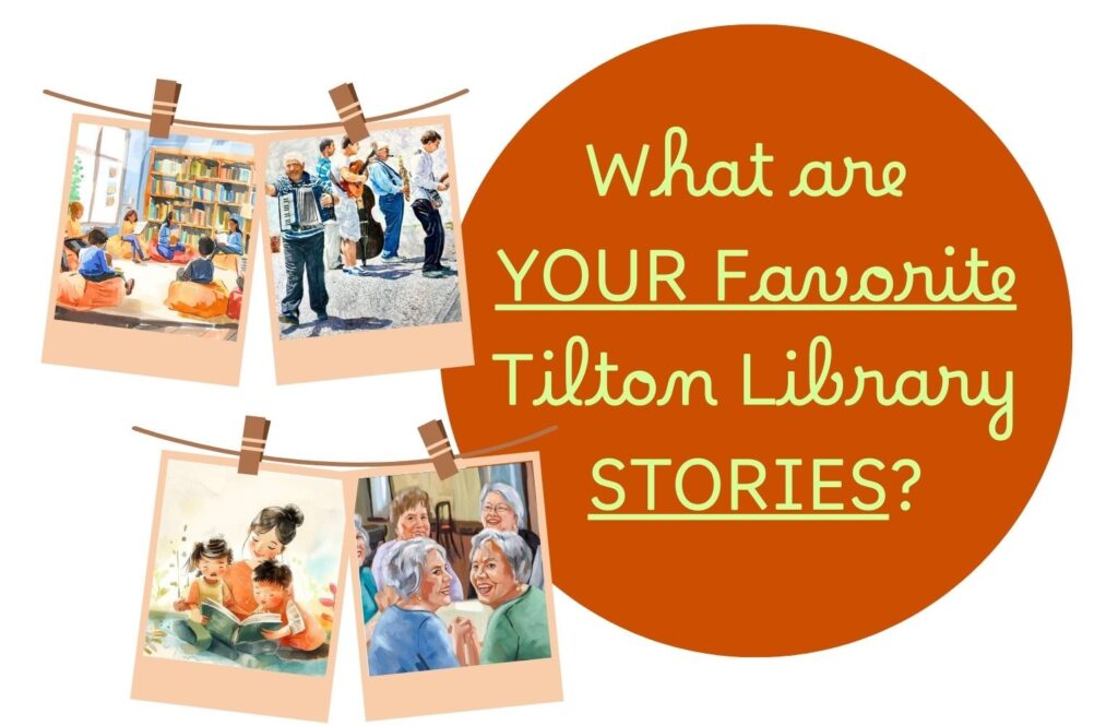 As we enter a new era for this library, we want to know what has helped or delighted you in the past, as well as what excites you about our future. We are collecting our patrons’ stories about their experiences at and dreams for the Tilton Library so we can share them in our new building! Over the years has the Tilton Library helped you, reached you, connected, or entertained you in some special way? Feel like sharing your unique story? CLICK HERE TO COMPLETE THE FORM!