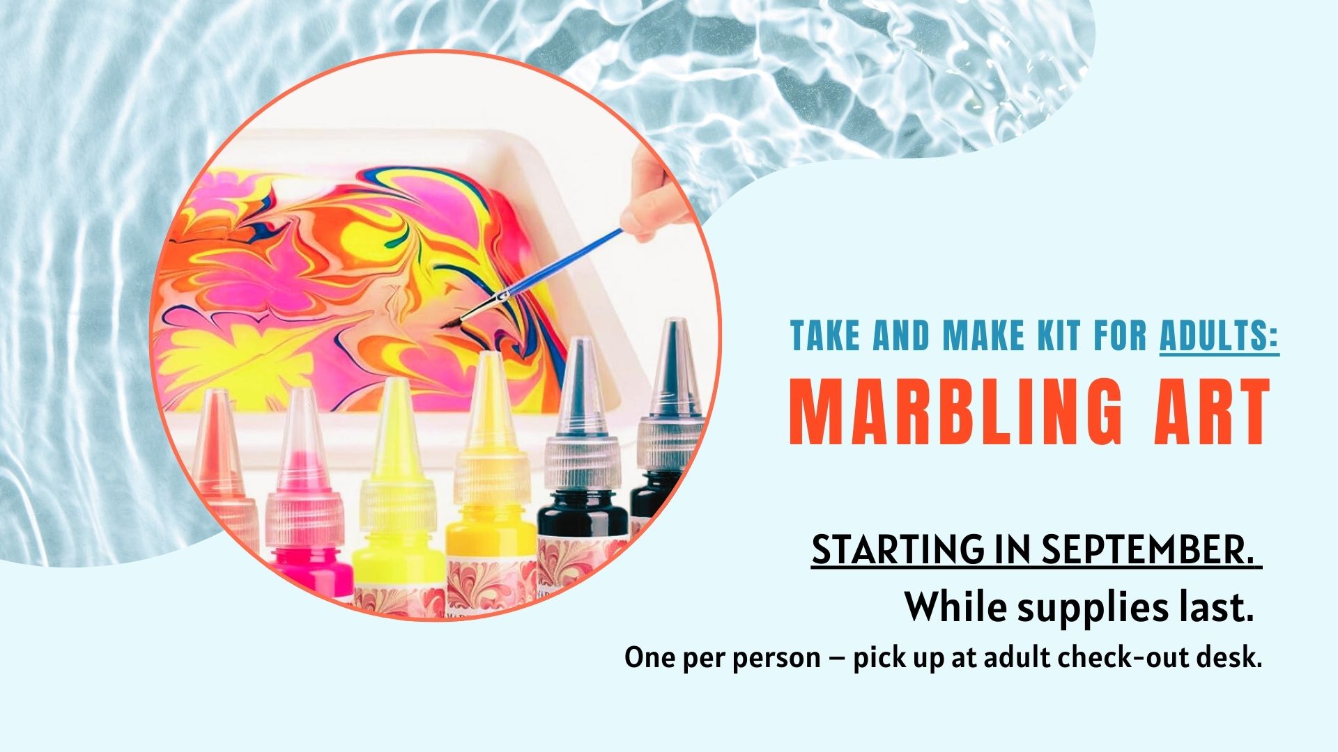One per person – pick up at adult check-out desk.